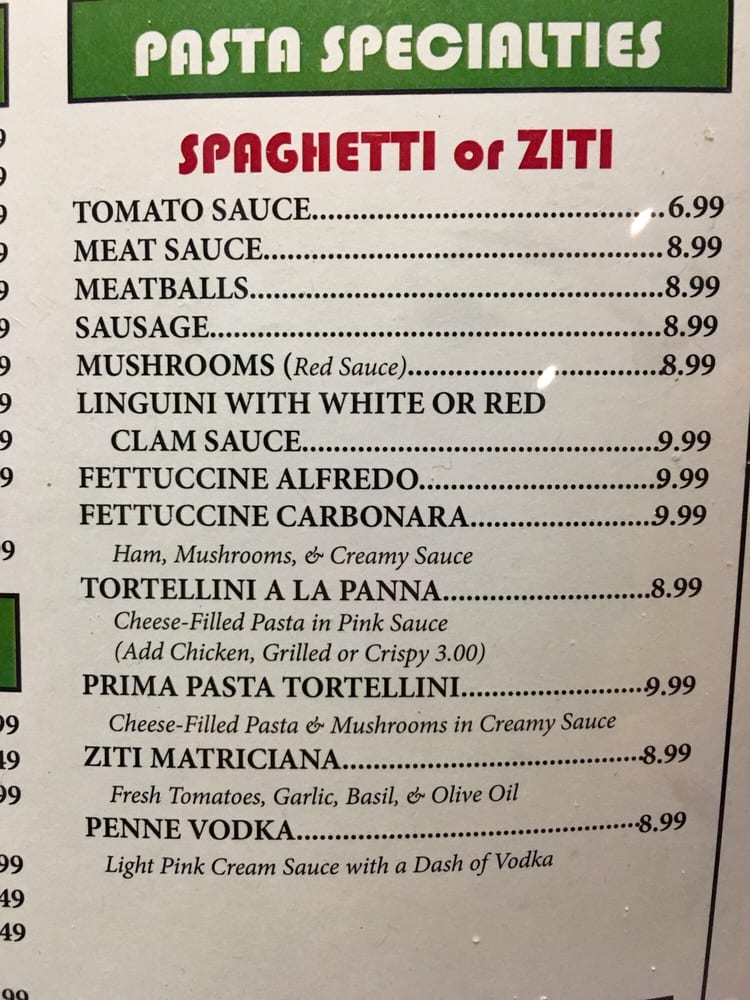 Lasagna, manicotti, cannelloni, ziti & tortellini.